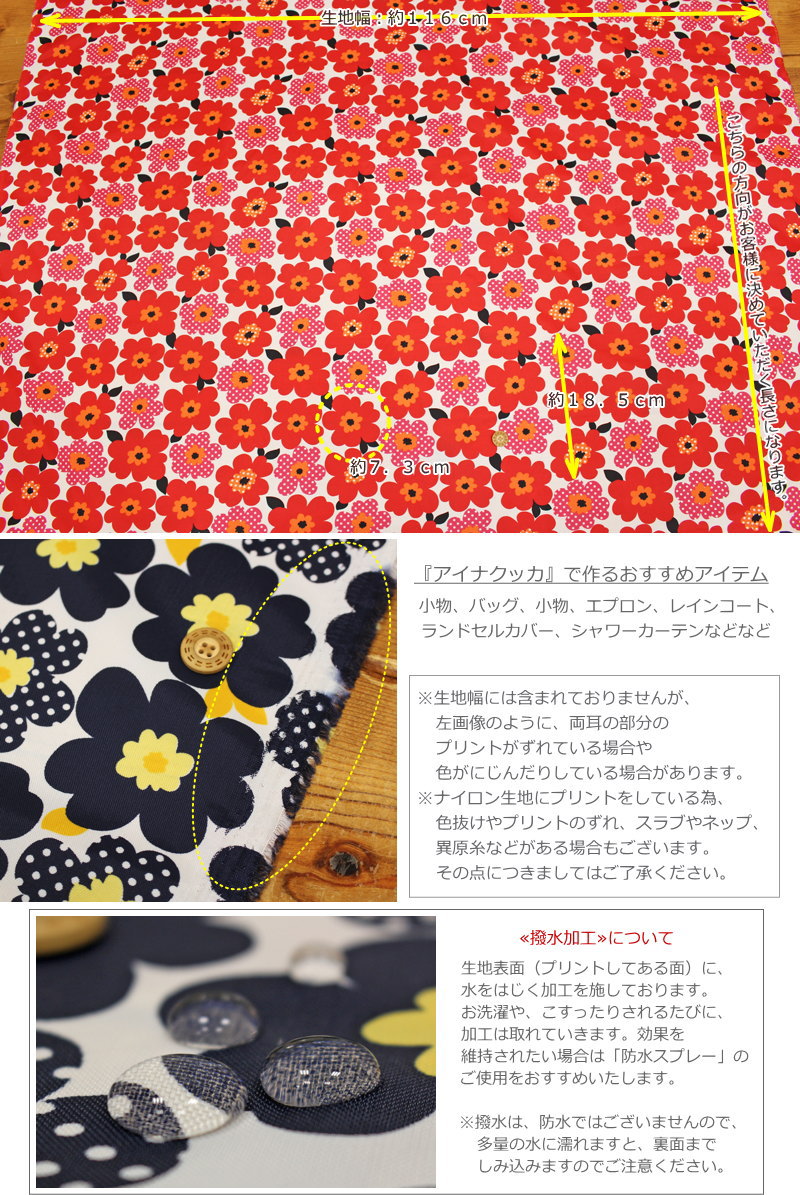 素材:ナイロン100% 生地幅:約116cm ※こちらの生地に合うオススメの糸の色は 【全て:生成】 になります。